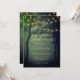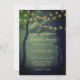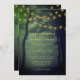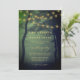 Bosque rústico verde oscuro y dorado colgando cuerdas de brillo luces modernos imitación tipografía de oro escritura invitación a la boda.