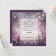 Invite a sus seres queridos a celebrar su día especial con esta encantadora invitación a la boda, que incluye un jardín crepúsculo bañado en suaves tonos de lavanda y brillantes luces de hadas. Flores silvestres delgadas, mariposas extravagantes y detalles de bokeh brillantes crean una atmósfera romántica y etérea que se siente directamente en un cuento de hadas. Perfecto para las parejas que quieren que su papelería boda refleje una sensación de asombro, romance y elegancia intemporal, este diseño prepara el escenario para una celebración mágica bajo las estrellas.