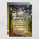 Happily Ever After wedding brunch invitation featuring a path in an enchanted forest with festive string lights.