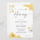 Celebremos a la futura novia con nuestra encantadora invitación a la ducha de novia "Encontró a su miel". Este encantador diseño captura la esencia del amor y la dulzura, convirtiéndolo en la introducción perfecta a una celebración alegre en honor de sus próximos nupcias. La invitación está adornada con deliciosos panecillos acuáticos, creando un entorno encantador que simboliza el dulce viaje por delante. Los tonos amarillos suaves añaden calidez y elegancia, marcando un tono alegre para el evento. Ilustraciones de abejas rebosan en torno a la invitación, agregando un toque caprichoso que capta la emoción y alegría de la ocasión. Estas abejas adorables son un guiño a la dulce historia de amor de la novia, haciendo la invitación tanto personal como memorable. El diseño destaca por sus delicadas flores silvestres amarillas, artísticamente dispuestas para realzar la belleza natural de la invitación. Estas flores simbolizan nuevos inicios y felicidad, complementando perfectamente el tema del peine de miel. La invitación incluye un moderno tipo de letra de escritura que añade un toque personal e íntimo. Esta elegante tipografía garantiza que los detalles de la ducha de novia se presenten con claridad y estilo, invitando a los invitados a unirse a la celebración con calor y encanto. Invite a sus seres queridos a compartir la emoción y dulzura del próximo viaje de la novia con nuestra invitación a la ducha de novia "She Found Her Honey". Es más que sólo una invitación; es una hermosa expresión de amor y anticipación, marcando el tono perfecto para un día lleno de alegría, risas y recuerdos inolvidables.