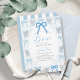Esta tierna invitación a la ducha de novia "encontró su arco/beau" presenta un fondo azul claro con un delicado patrón de arco/cinta azul. En el reverso se ve un fondo blanco con rayas azul claro.