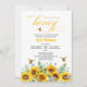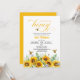 El elegante Bridal Shower está decorado con abejas y fondo de girasol y con una elegante caligrafía.