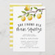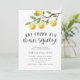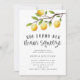Tarjeta de invitación a la ducha de novia divertida con ilustracion de rama de limón. El texto dice "encontró su aprieto principal". Perfecto para tu ducha nupcial o nupcial en verano.