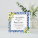 A Encontró que su principal tema de ducha de limón limón es la perfecta ducha de novias de verano. La fruta fresca y fresca de cítricos siempre crea hermosas muestras y refrescos. La colección Lemons del Jenny se encarga de los limones acuarelas de moda y los une con azulejos azules mediterráneos. En este diseño los azulejos crean un marco azul. Un delgado marco dorado lo eleva. Dos ramos de limón aportan un toque floral. Ella encontró que su principal apretón está escrito en la parte superior. El resto de los detalles de la ducha de novia siguen. Si necesita ayuda para encontrar un elemento que coincida, por favor envíeme un mensaje. Soy Nelda y me encantaría ayudar.