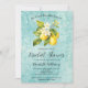 Elegante invitación a una ducha nupcial de color limón con el texto "encontró su apriete principal", un ilustracion floral y un fondo verde azulado. Personalice el texto con los detalles de su fiesta, la información de RSVP y el nombre del Registro.