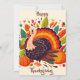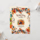 The design invitation is aimed at those who want their Thanksgiving feast with all the traditional trappings - autumn seasonal flowers, and a turkey surrounded by autumn motifs, celebrating Thanksgiving.