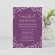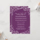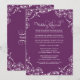 Cree una impresión rica y romántica con esta invitación de ensayo de boda de ciruela. Los florecimientos de scrollwork blanco y la caligrafía elegante enmarcan un encantador poema rimado que detalla la práctica de la ceremonia y la celebración de la cena a seguir. El fondo profundo de tono joya crea un contraste llamativo con los elementos de diseño blanco. Todo el texto, colores y detalles de diseño son totalmente editables.