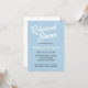 Las invitaciones a la cena son de estilo boda y sencillo, con letras blancas y negras estilizadas sobre un fondo de color azul claro y moderno. Edite sus invitaciones reemplazando los nombres, fecha/hora, ubicación e información de contacto con la suya. Seleccione el tamaño de la invitación y el estilo de papel.