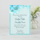 © Sunny Mars Designs - Floral Hibiscus: Light Aqua Blue 5" x 7" Boda Rehearsal Invitaciones - Elegante, a la moda, invitaciones a bodas personalizadas con un hermoso ilustracion de un diseño de decoración floral de un bonito azul giratorio de hibisco con un fondo verde azulado o turquesa.