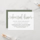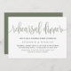 Invite a la familia y a los amigos con esta elegante y sencilla invitación a la cena. Presenta caligrafía caprichosa de color verde claro con tipografía clásica. Personalice esta invitación para el ensayo añadiendo nombres, fecha, dirección y otros detalles. Esta invitación de ensayo de boda de guiones es perfecta para cualquier temporada y tema de boda.