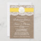 ¡Estas invitaciones a la cena de este rústico ensayo de bodas de arena amarilla y dólares de playa harán la invitación perfecta para cualquier matrimonio a orillas del mar! El diseño presenta un bonito fondo rústico con efecto burlap y un romántico efecto de encaje blanco vintage con un impresionante efecto de dólar de arena y cinta amarilla. Estas invitaciones pueden ser personalizadas para su ocasión especial y harían la invitación perfecta para cualquier boda en la playa, ducha de novia, fiesta de compromiso, fiesta de cumpleaños y mucho, mucho más. Tenga en cuenta que Zazzle sólo vende invitaciones impresas para que estas invitaciones no tengan ningún material real de color burlap, lace, arena, dólar o cinta.