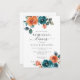 Invitación Ensayo de cataclismo floral Verde azulado Naranja