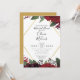 CENA DE ENSAYO | Floral Marsala Burgundy Rico y Elegante rodea esta forma de diamante geométrico con borde dorado con todos los detalles de tu fiesta dentro: una combinación de letra manuscrita informal y letra serif formal le da un aspecto elegante y chic. La parte posterior es un dorado sólido tomado del marco (puedes cambiar esto fácilmente eligiendo la opción de personalizar más).