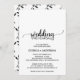 Esta sencilla tarjeta de boda de caligrafía negra es perfecta para un boda rústico. El diseño minimalista incluye un elegante guión de broche y un bonito corazón femenino. El respaldo presenta un patrón clásico de hojas y ramas.