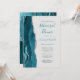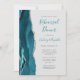El borde izquierdo de esta elegante y moderna invitación a un ensayo boda incluye un verde azulado borde de batido de color azul con un falso purpurina plateado. El texto del personalizable combina la escritura a mano verde azulada y gris carbón, la placa de cobre y las fuentes cursivas en un fondo gris claro. El reverso presenta un diseño de ágata azul y plata verde azulado.