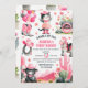 ¡Celebra el gran hito de tu pequeña vaquera con esta invitación de cumpleaños de Saddle Up! Diseñado en suaves tonos de color rosa con encantadores detalles occidentales, es la manera perfecta de marcar el tono para una divertida, rústica y elegante fiesta de cumpleaños. Con elementos jocosos de vaquera como botas, gorras, lassos y rodeo de vibraciones, esta invitación reúne dulzura y aire occidental. Una deliciosa elección para los padres que planean una primera celebración rodeo con temática de vaquera rosa.