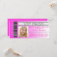 Invitación Entrada de Boleto VIP Rosa para Fiesta de Graduaci