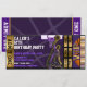 Invitación Entrada VIP púrpura dorada para fiesta de cumpleañ