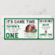 ¡Es el momento del juego! Celebra el primer cumpleaños de tu pequeño vicepresidente con esta divertida invitación al estilo de los boletos de fútbol "First Year Down". Perfecto para su futuro mariscal de campo, esta invitación deportiva se parece a un boleto de un día de juego y se puede personalizar con el nombre de su hijo, detalles del fiesta y más. Un diseño digno de un toque para cualquier cumpleaños con temática futbolística.