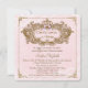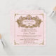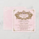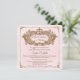 Invitación de cumpleaños Érase una vez con una hermosa corona dorada brillante ornamentada con un lazo rosa bonito sobre un fondo de encaje dorado y rosa pálido. Puede personalizar fácilmente esta elegante invitación de cumpleaños de princesa de cuento de hadas rosa y dorado para su evento simplemente agregando sus detalles en el estilo de fuente y color, y redacción que prefiera. Todos los diseños son gráficos impresos sin joyas reales, lazos, brillantina, etc.