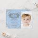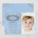 Hermosa invitación de cumpleaños de princesa de cuento de hadas con brillo azul y plateado con elegante marco de corona con brillo plateado sobre un hermoso fondo azul y plateado de Cenicienta. Puede personalizar fácilmente esta bonita invitación de cumpleaños de princesa de cuento de hadas azul y plateada para su evento simplemente agregando su foto y detalles del evento en el estilo de fuente y color, y redacción que prefiera. Todos los diseños son gráficos impresos sin joyas reales, lazos, brillo, etc.