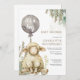 Es un niño, un cordero y un globo acuarela invitación a la ducha de bebé. Encantador y caprichoso. Pastel marrón y gris. ¡Por el bebé de la granja!