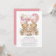 TWINS Pink Balloons Teddy Bears Baby Shower Invitation Card. Celebra la próxima llegada de tu precioso bebé con esta hermosa tarjeta de invitación. Todos los textos están predispuestos para que puedas personalizarlos fácil y rápidamente con los detalles de tu ducha de bebé.