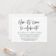 Tarjeta de invitación de boda con tema de escritura moderna (Ahora es hora de celebrar). Es perfecta para su cena de boda informal junto al lago, baile y fiesta.