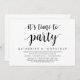 Tarjeta de invitación de boda con tema de escritura moderna (Es hora de fiesta). Es perfecta para su cena de boda informal junto al lago, baile y fiesta.