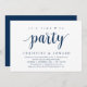 Tarjeta de invitación temática moderna rústica, guión azul marino (con título de tarjeta: Es hora de fiesta). Es perfecto para la recepción después de la boda / fiesta de celebración después de la boda. Agrega tus detalles en fuente / letra negra a juego.