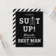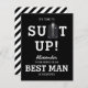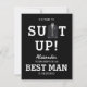 Tarjetas de propuesta personalizadas - ¿Serás tú? Una forma divertida de pedirle a alguien que sea tu padrino, groomsman, portador del anillo, oficial de bodas, etc. Con un fondo negro que se puede cambiar a cualquier color, las palabras "¡VESTIRSE!" con la 'i' en forma de esmoquin y una plantilla que se personaliza.