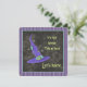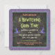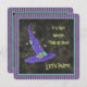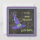 Una divertida invitación a fiestas cuadradas con un gorra de brujas flotante morado y azul verde azulado encantado que dice "Es esa época de brujería del año, Fiesta" en un oscuro fondo negro de carbón vegetal con un verde azulado borde azul. Todos los detalles editables del fiesta están en la parte posterior.