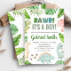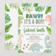 Invitación Es un baby shower de dinosaurio para niño