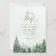 Esta invitación de baby shower de bosque de pinos con estilo de acuarela rústica y elegante se puede personalizar con su información en tipografía moderna. Diseñado por Thisisnotme©