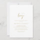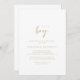 Esta es una moderna y elegante invitación a la ducha de bebé dorada es perfecta para una ducha rústica o para rociar. El diseño, sencillo y elegante, presenta una tipografía clásica, dorada y elegante.