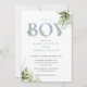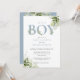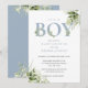 Invitación Es un niño Dusty Blue Greenery Carta Baby Shower