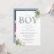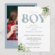 Invitación Es un niño Dusty Blue Greenery Foto Baby Shower