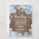 Invitación Es un niño floral azul Baby Shower Rustic Wood
