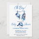 Invitación Es un niño zapatos de bebé azules una gorra simple