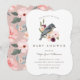 Invitación Es Una Niña Acuarela Rosa Flores y Pajarito