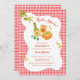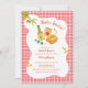 Esta encantadora y moderna invitación es perfecta para una ducha de novias con el tema "That's Amore" o una temática italiana. El diseño incluye un ilustracion de comida típica italiana, como tomates, aceite de oliva, lasaña y pasta. Un fondo de textura de guijarros rojos y una rama de olivo en la esquina completan esta adorable carta.