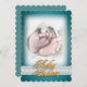 Dibujo de lápiz de pies de bebé invitado por Baby Shower con texto dorado.fondo azul-verde verde azulado. Personalizar con su propia información.