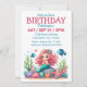 “Explora este encantador y caprichoso dibujo animado de una encantadora sirena sentada en una roca vibrante cubierta de coral, rodeada de peces amistosos. La sirena tiene un largo cabello rosa que fluye y una vibrante cola azul verdosa. Tiene dos peces azules y uno rosa nadando cerca y una feliz estrella de mar rosa descansando entre las algas y el coral coloridos. Esta adorable ilustración encantará a niños y adultos por igual. Sobre la ilustración hay plantillas para agregar todos los detalles de tu fiesta.