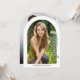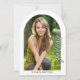 Esta moderna invitación a la fiesta de graduación con arcos ofrece un diseño sencillo con espacio para 2 fotos. El texto personalizado, en la parte posterior, le permite añadir los detalles de su fiesta.