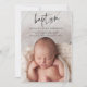 Esta invitación para el bautismo de foto bebé con guión moderno incluye una hermosa foto vertical con sangrado completo, arte de bautismo con letras a mano y un texto mínimo editable. Haga clic en el botón de edición para personalizar de este diseño.