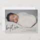 Esta invitación para el bautismo de foto bebé con guión moderno incluye una hermosa foto horizontal con sangrado completo, arte de bautismo con letras a mano y un texto mínimo editable. Haga clic en el botón de edición para personalizar de este diseño.