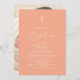 Una sencilla y moderna invitación al bautismo incluye una cálida tarjeta de melocotón de albaricoque con tipografía blanca para personalizar con sus detalles clave, incluyendo el nombre, fecha, hora y ubicación del bautismo, recepción e información de RSVP. En el reverso aparece una foto de su bebé