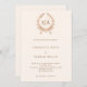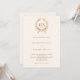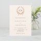 Un fondo de color beige decorado con un escudo- Personalice y sus iniciales, nombres y detalles en monograma. Atrás: agregue la url/link a su sitio web boda para más detalles y/o RSVP