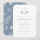 Invitación Escudo botánico Dusty Blue Monograma