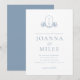 Invitación Escudo botánico Dusty Blue Monograma